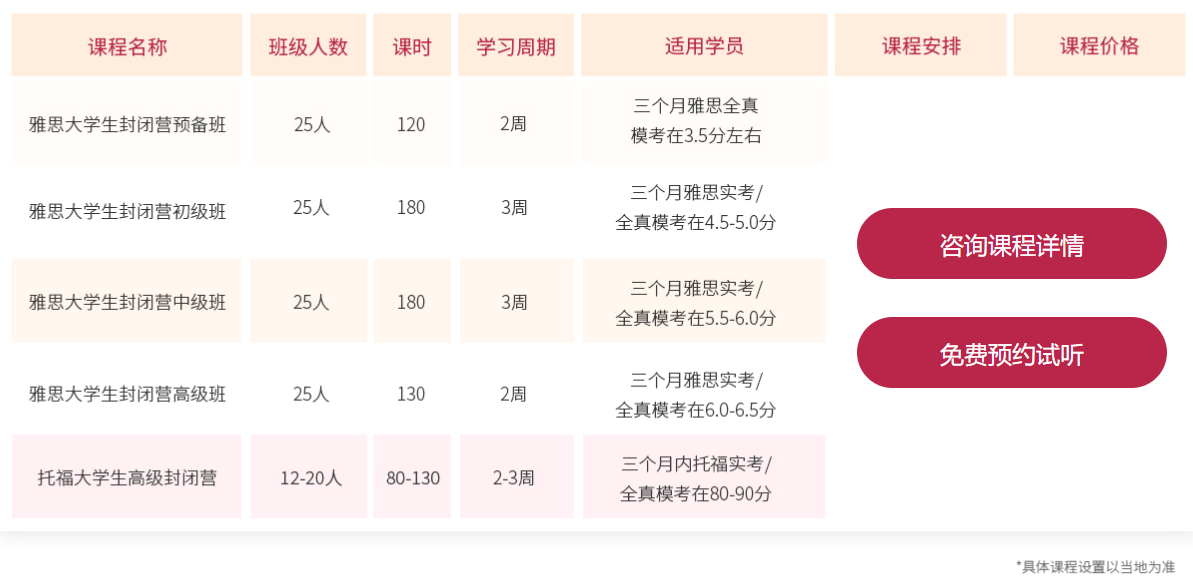 新东方寒假封闭营课程设置